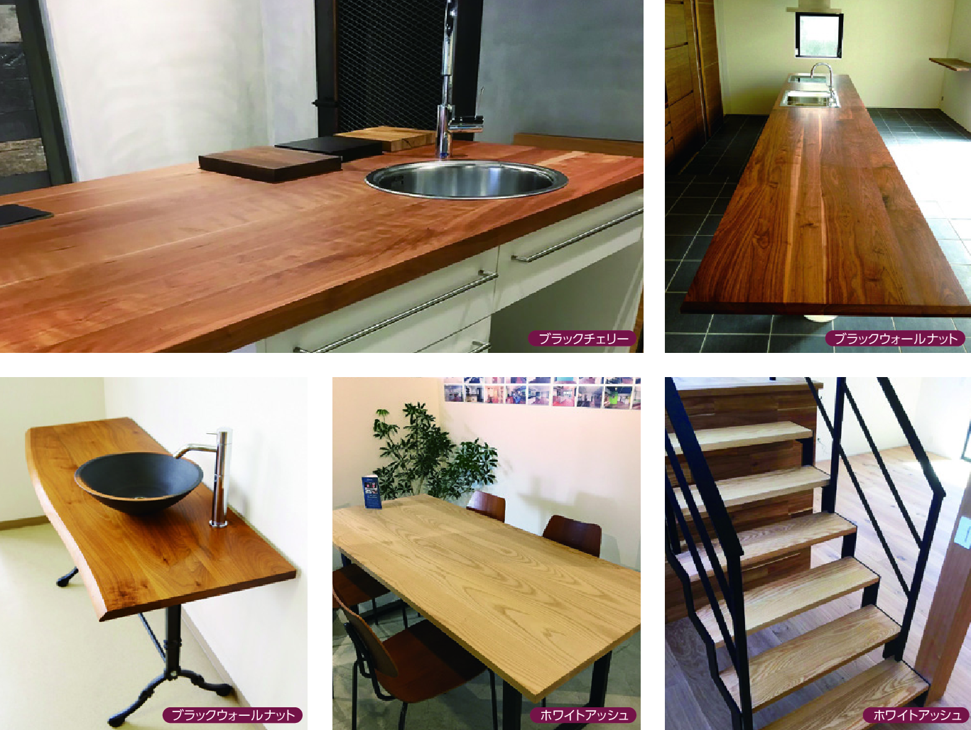| 無垢巾ハギ材 集成材とは異なる木の風合いを最大級に活かした、より高級感のある製品になります。 |