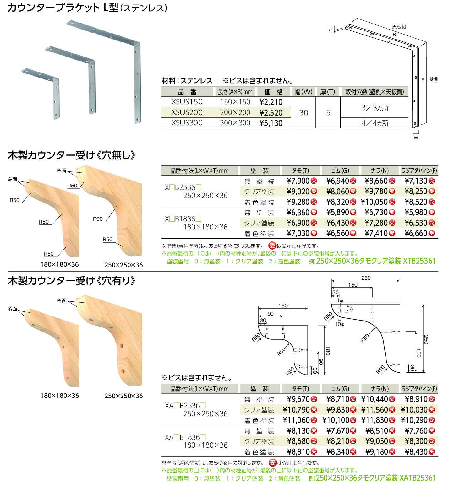 カウンターの受け材を金物から木製のものを取り揃えました。