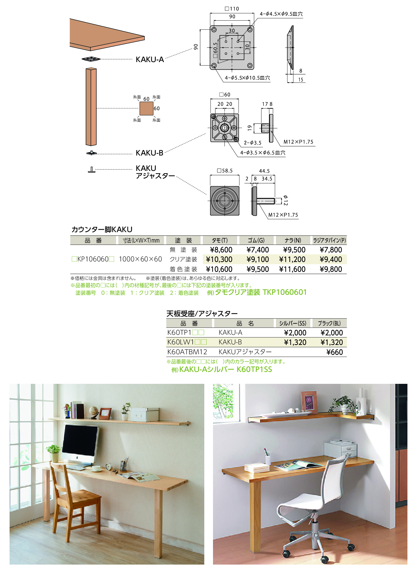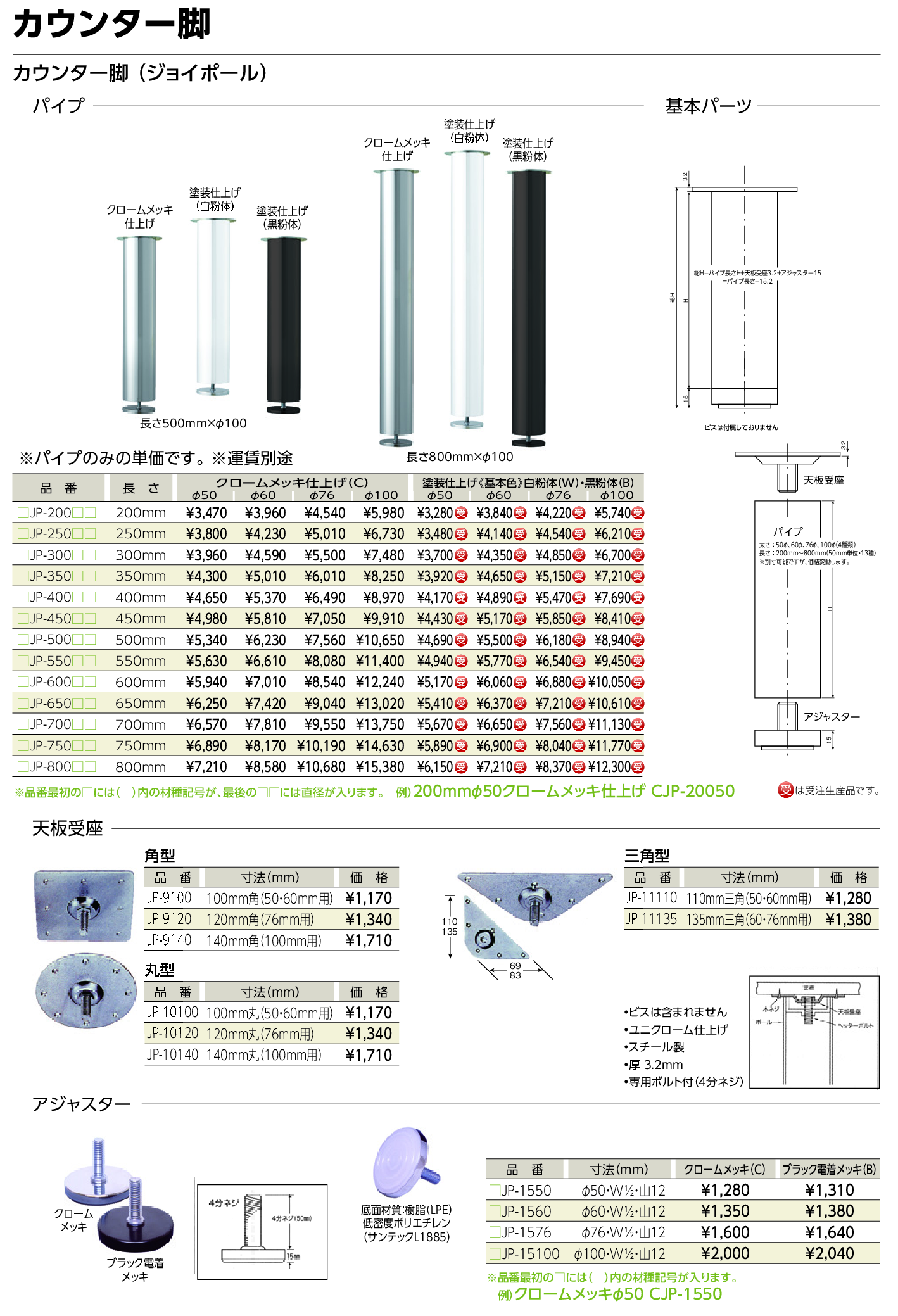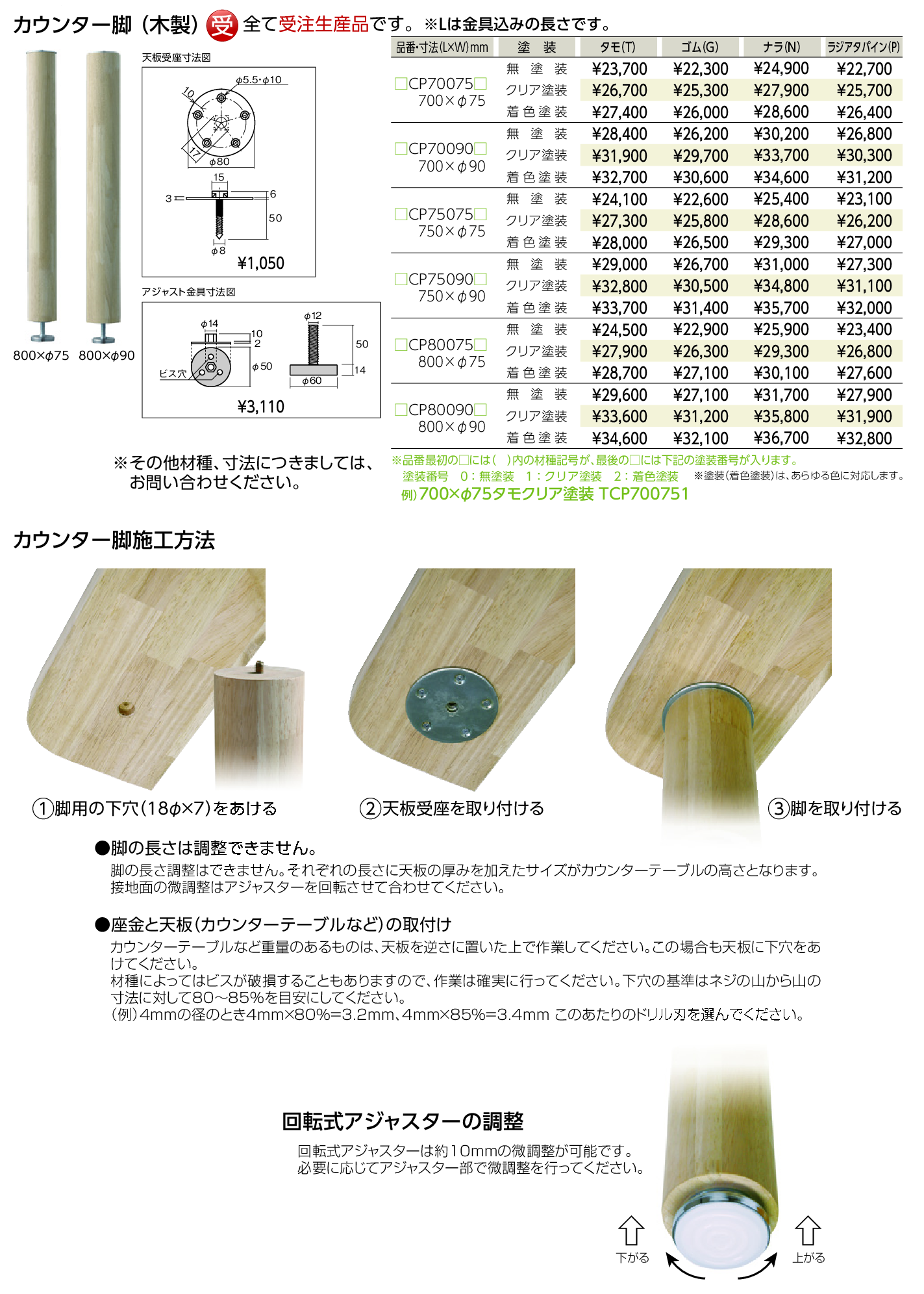 カウンターの脚です。下記の形状以外がご希望でしたら、お電話にてご相談お受けいたします。